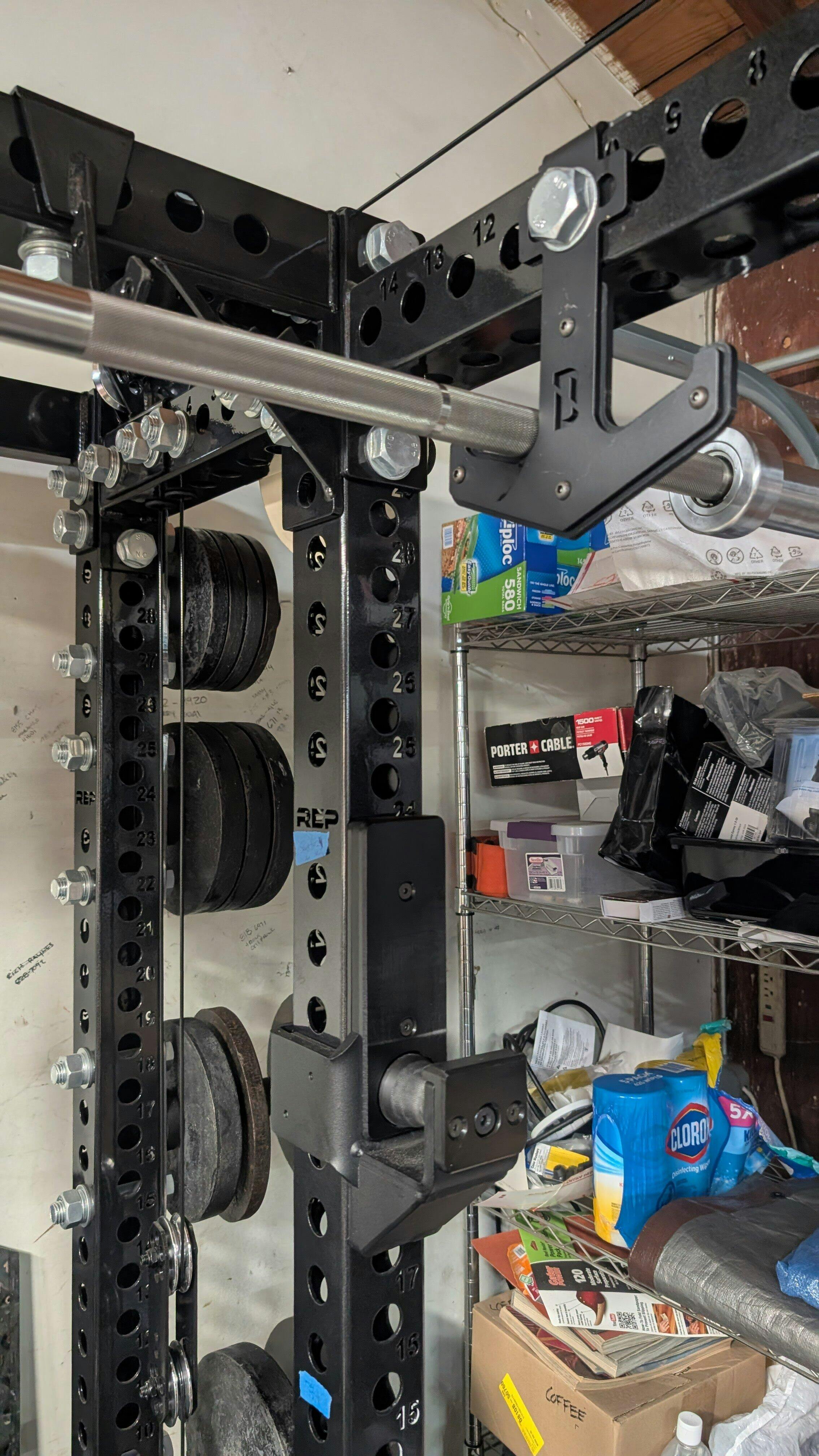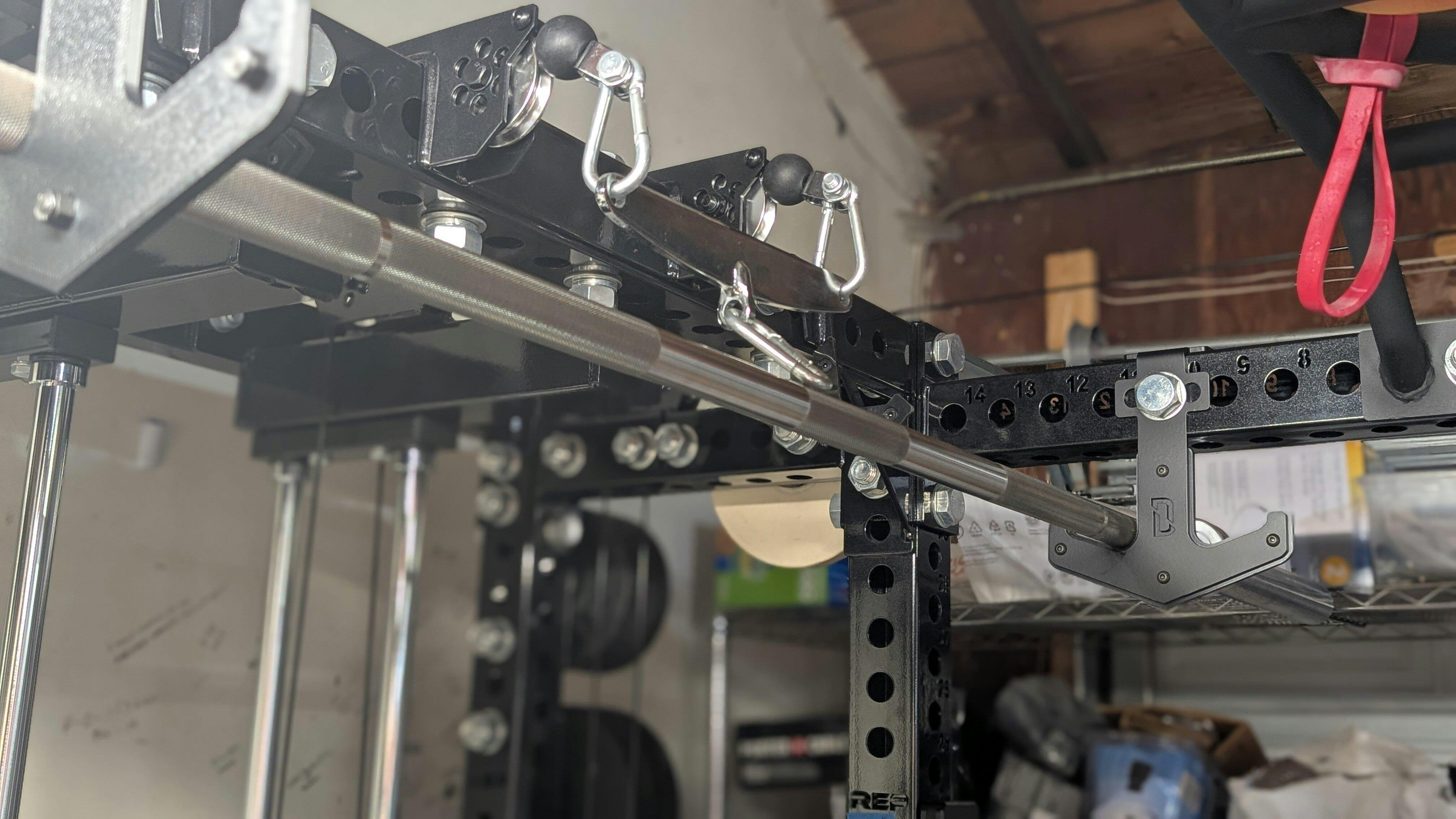 The ability to top mount The Barbell Anchor to your power rack allows you to store your most used barbells, regular and specialty, in your rack but out of the way.