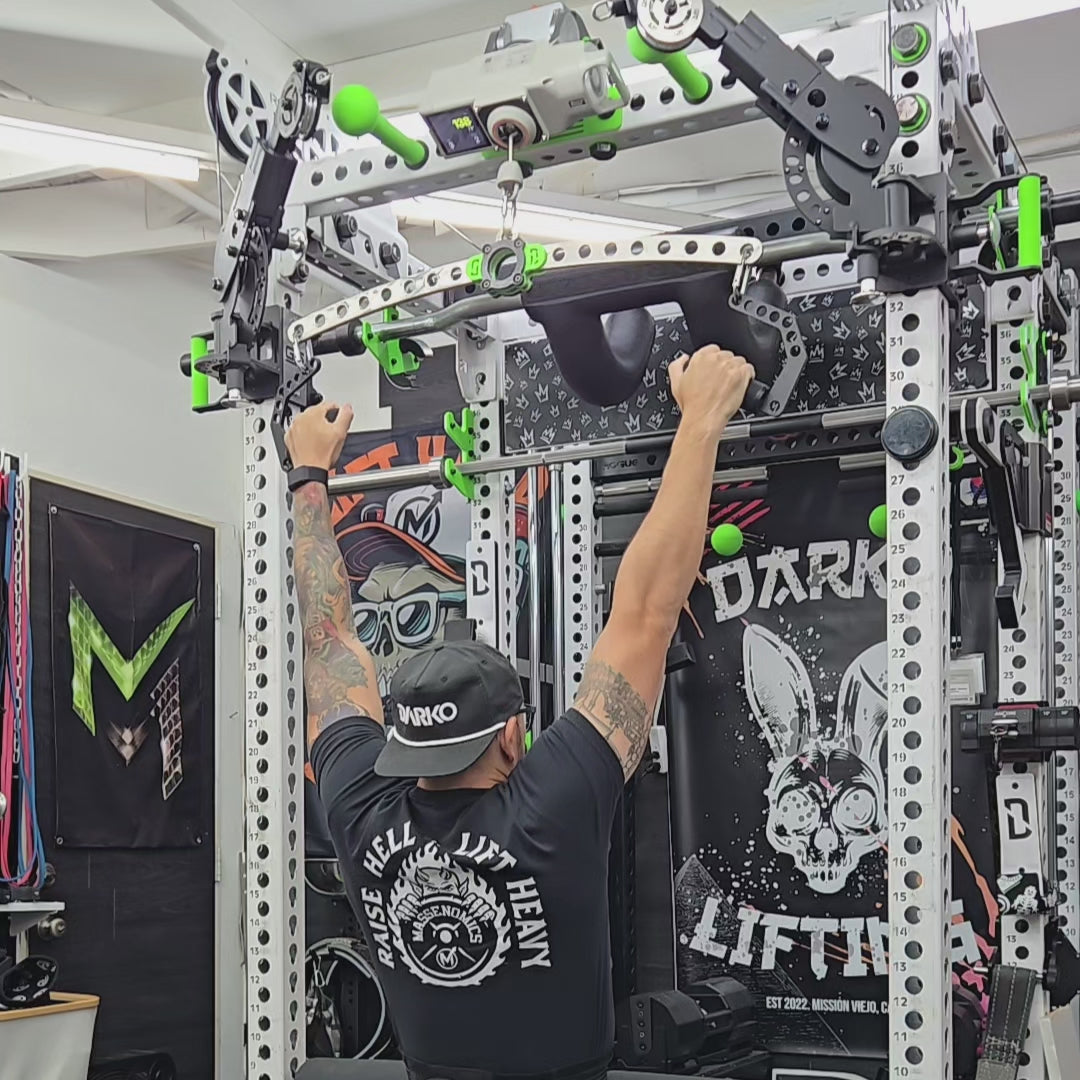 The Darko Lifting D-Nades are open D-Handles built for versatility and raw pulling power. Made from .313" mild steel with a textured black powder coat, they feature 8 selector holes for custom setups—including a nunchuck grip option.