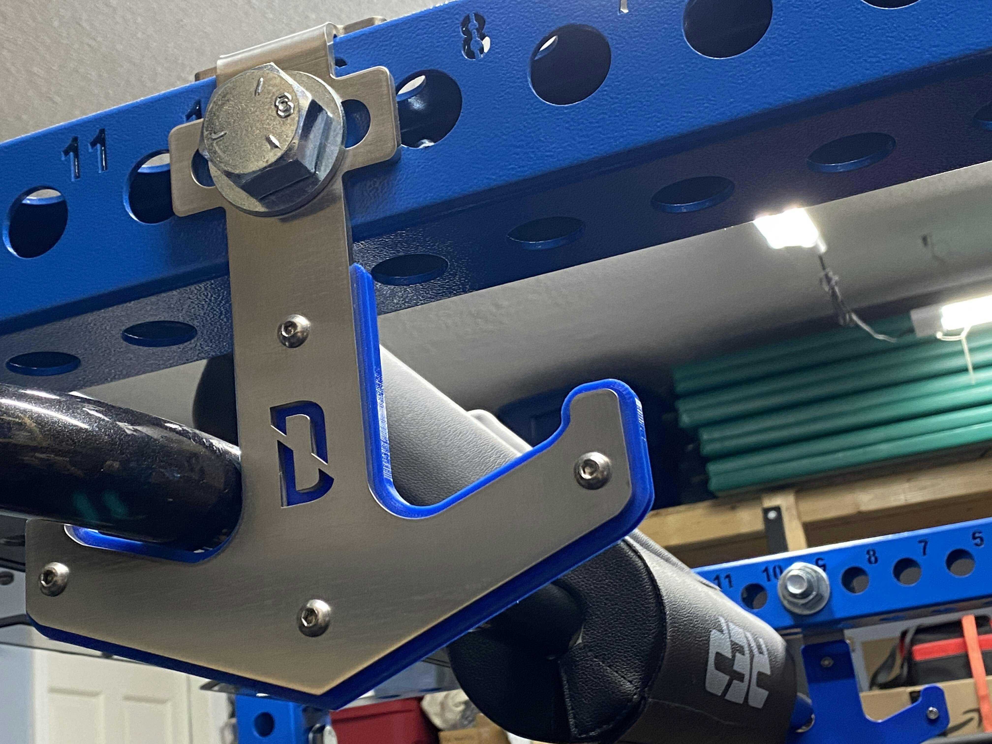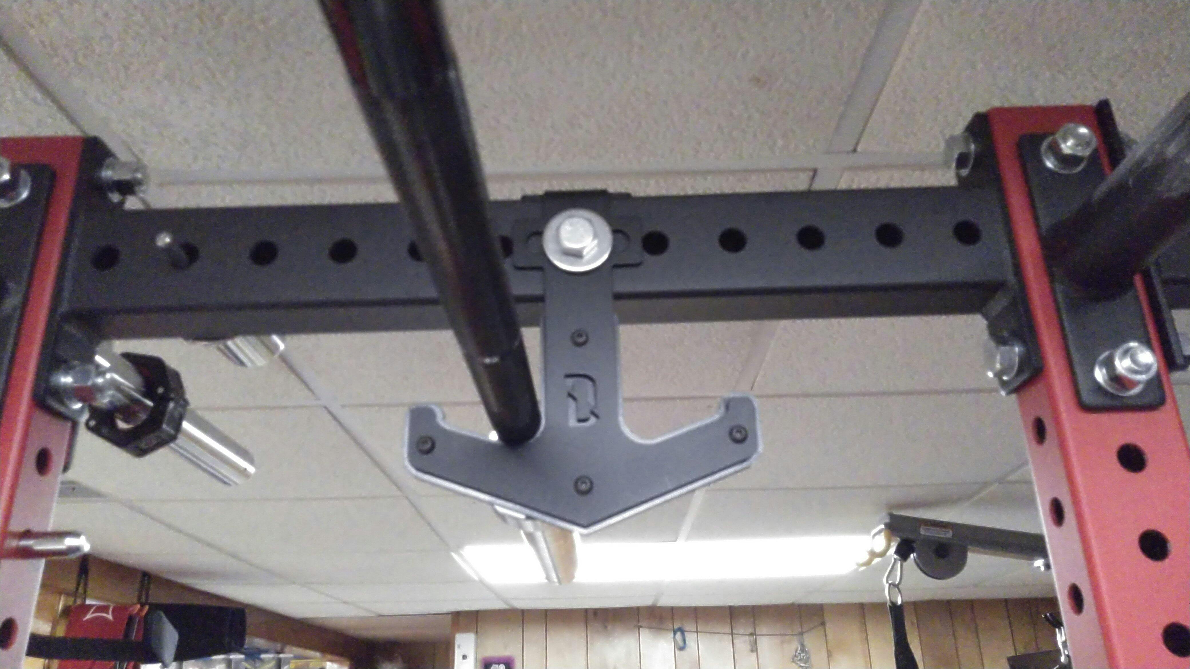 The ability to top mount The Barbell Anchor to your power rack allows you to store your most used barbells, regular and specialty, in your rack but out of the way.